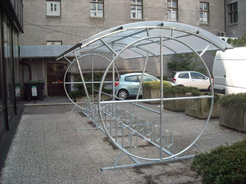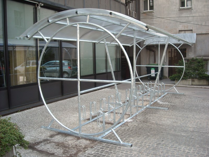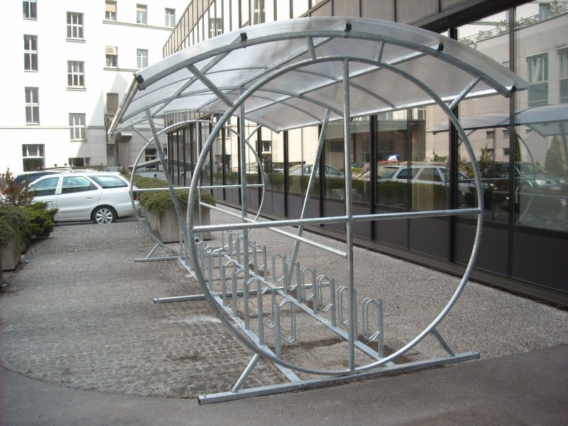 Wir fertigen auch schöne überdeckte Fahrradständer, die man in die Stadtzentren, vor die Schulen, Cafés und Sporthallen aufstellen kann.