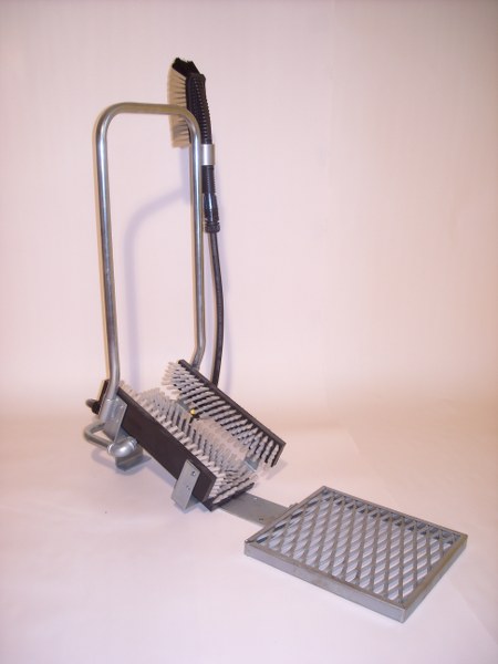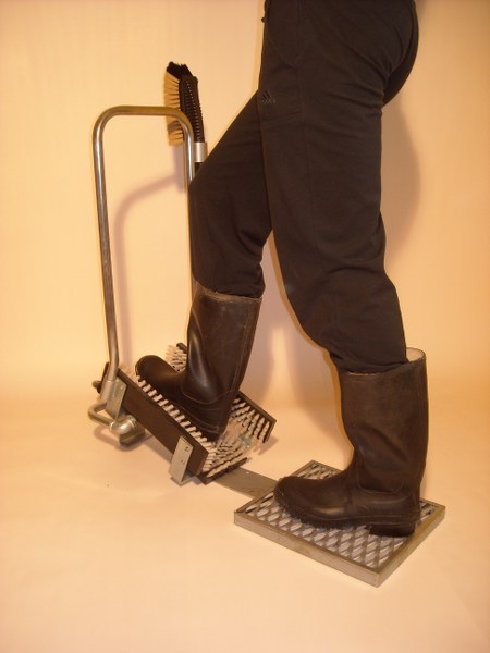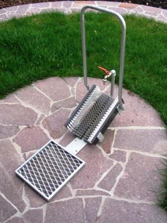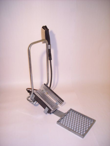 Für die Reinigung von Stiefeln, Bergschuhen, Sportschuhen oder anderen Schuhen in der Industrie (Chemie, Landwirtschaft, Lebensmittelindustrie). Besteht aus festen Bürsten, zwischen denen sich Düsen befinden, die den Schmutz von den Schuhen unter Hochdruck entfernen. Noch eine Handbürste steht zur Verfügung, mit der man den Schmutz noch gründlich ausbürsten kann.